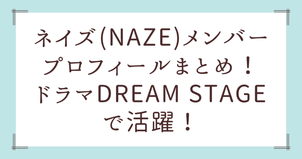 ネイズ(NAZE)メンバーのプロフィールまとめ!ドラマDREAM STAGEで活躍!