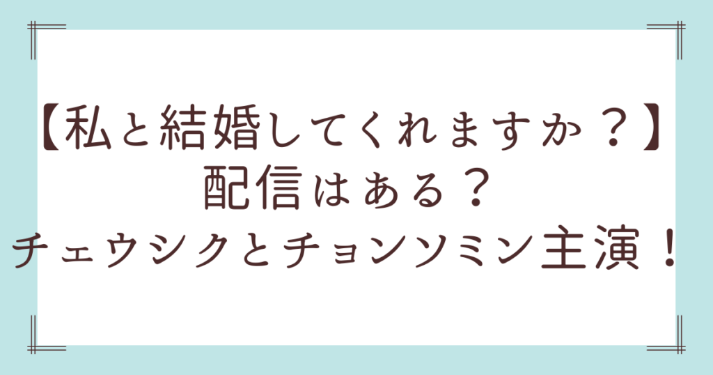 【私と結婚してくれますか?】配信はある?チェウシクとチョンソミン主演!