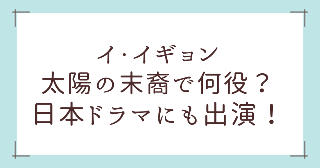 イ・イギョン太陽の末裔で何役?日本ドラマにも出演!